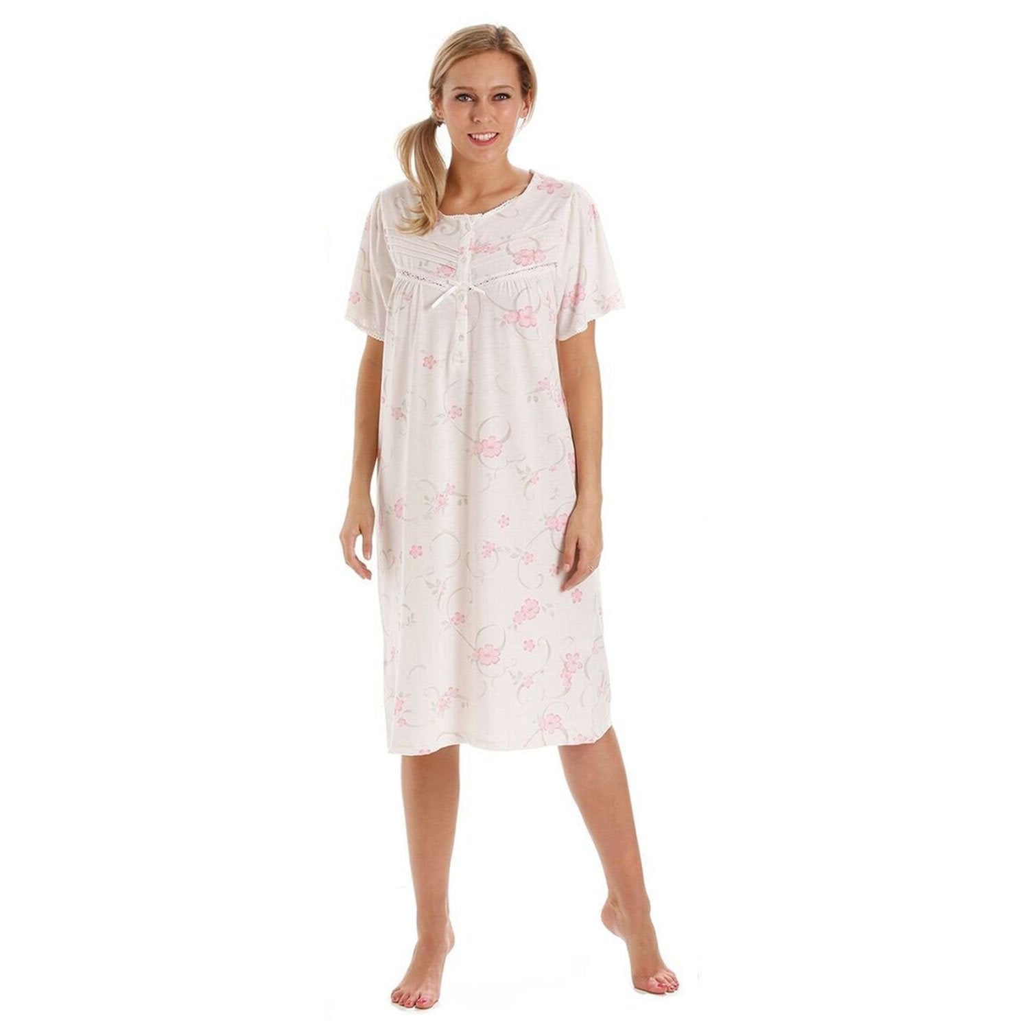 This delightful short sleeved nightdress in a lovely stretch jersey fabric and available to a UK size 36.